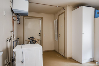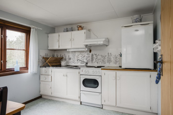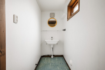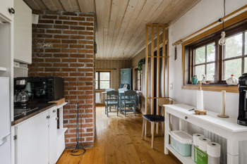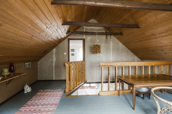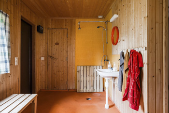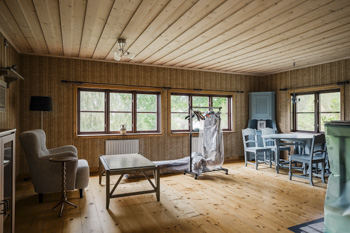 Gästehaus: 1-geschossiges Haus, Holzbauweise, Betondachziegel, Betonfundament, 2-fach verglaste Fenster