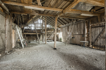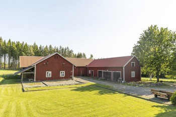 großes Stallgebäude mit Pferdeboxen und angebauter Scheune