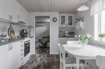 Das Haus wurde über die Jahre immer wieder renoviert und ist sehr gepflegt. Genießen Sie schöne Sommertage auf der Veranda. Zur kalten Jahreszeit sorgt der Kaminofen für Behaglichkeit.