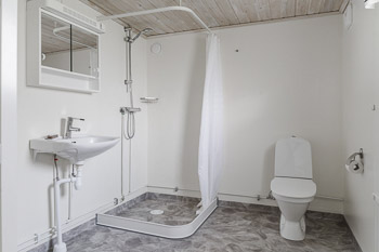 Badezimmer mit Dusche, WC und Waschbecken