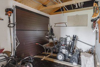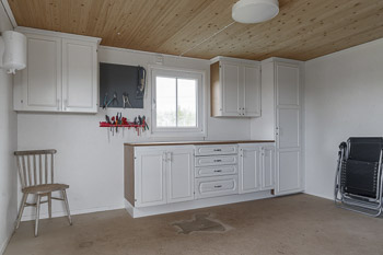 Nebengebäude mit Vorratsraum für Gartengeräte und kleiner Werkstatt, Veranda