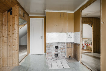 Mit der Renovierung vom DG kann der Holzherd in der Küche durch eine Verrohrung vom Schornstein wieder in Betrieb genommen werden. |